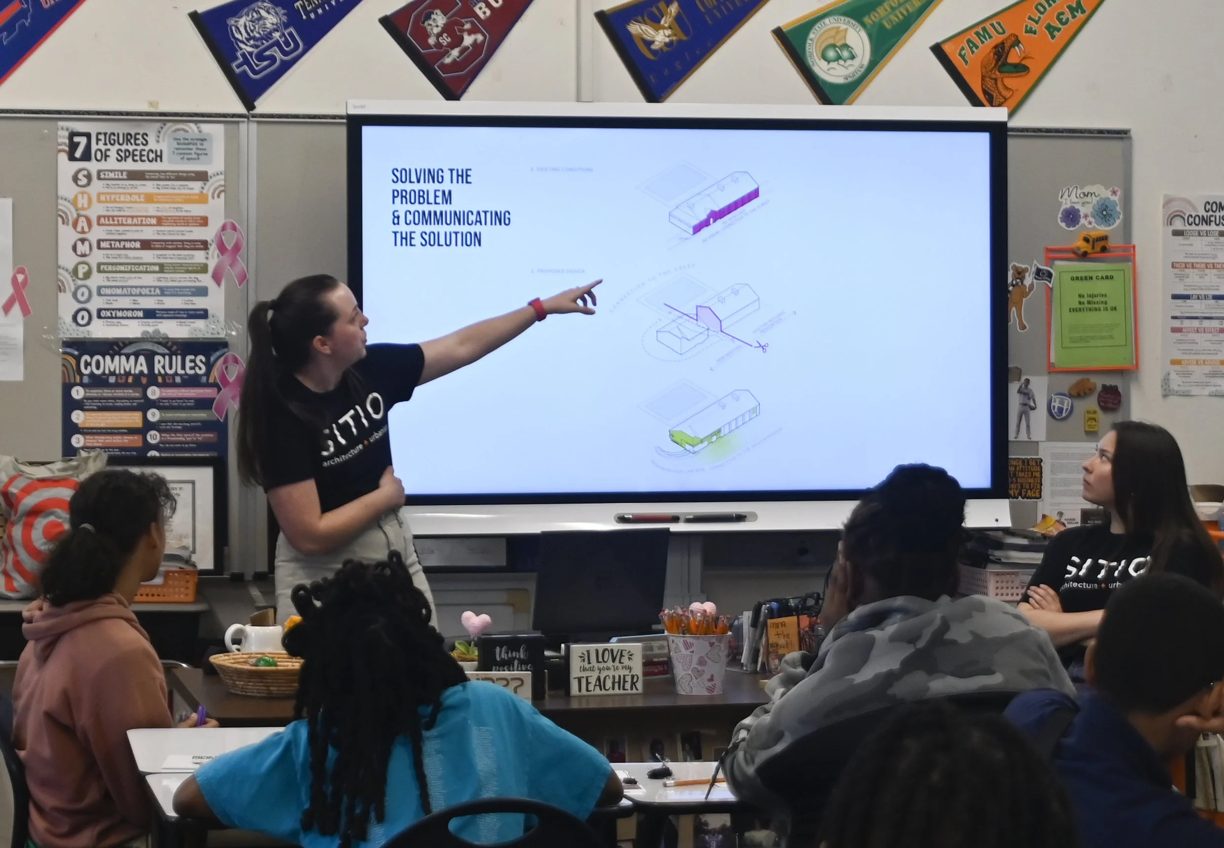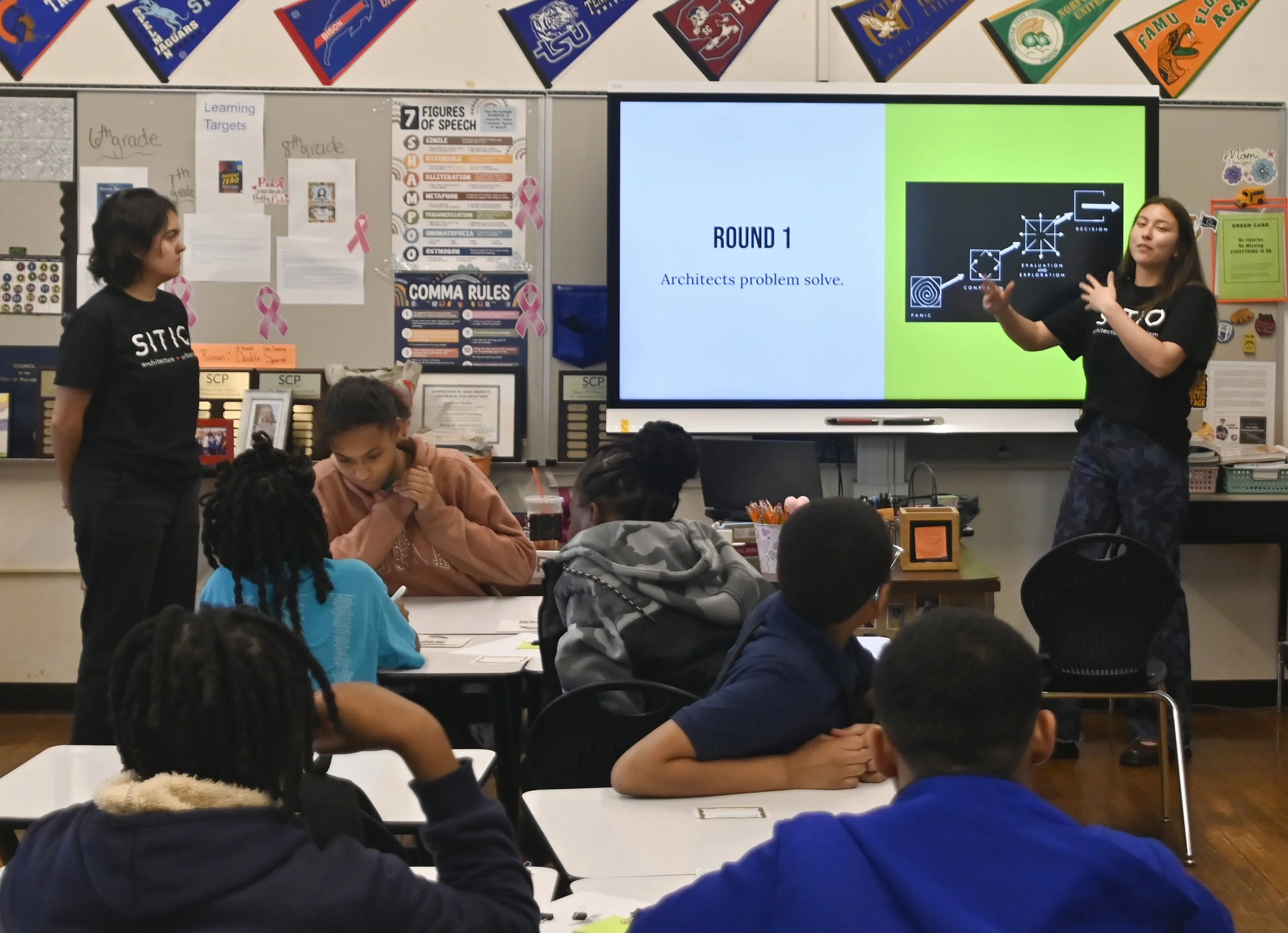 SITIO team members visited Ms. Heller’s sixth-grade class at Stanton Elementary School, leading hands-on activities that highlighted an architect’s role as problem solvers and creative thinkers. Students learned to develop design concepts and communicate ideas in new ways, gaining insight into the architectural process.